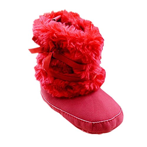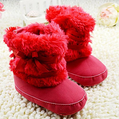 Weixinbuyベビーガールズファー蝶結び雪ショートブーツ暖かフリース靴 カラー: レッド
