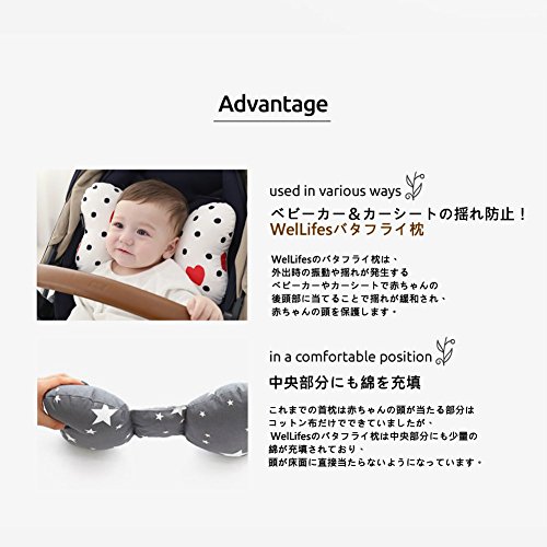 WelLifesバタフライ枕はベビーカーやカーシートで発生する揺れから大切な赤ちゃんを守ります。