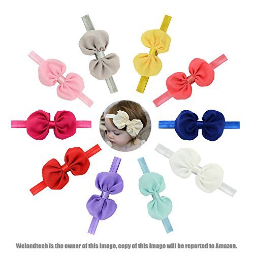 welandtechベビーガールズヘッドバンドソフトシフォンヘアリボン – 10値パック