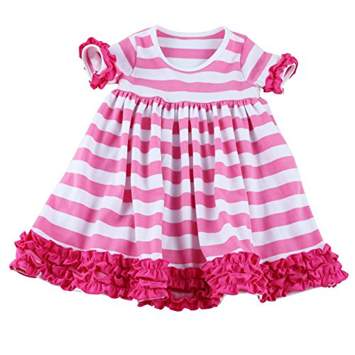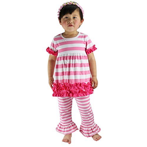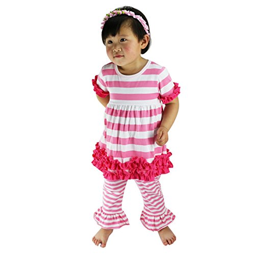 Wennikidsベビー女の子コットン半袖フリル付きトップドレスとパンツセット カラー: ピンク