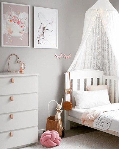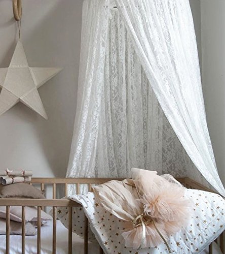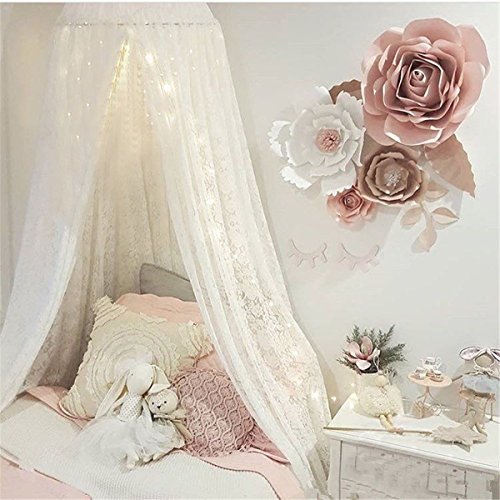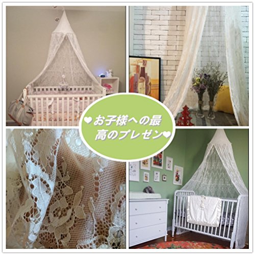 Wenscha キャノピー 天蓋付 スリーピングカーテン キッズテント 吊り下げタイプ お姫様 ガールズ 子供部屋 キッズルーム モスキートネット ベッドルーム プリンセス 天蓋ベッド インテリア ギフト 出産祝い ヨーロッパ風 秘密基地 (白いレース)