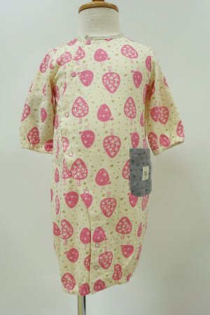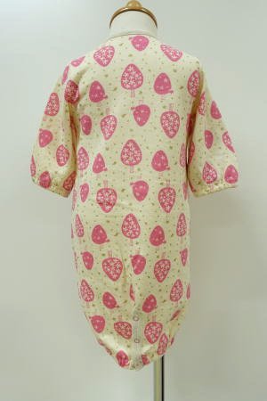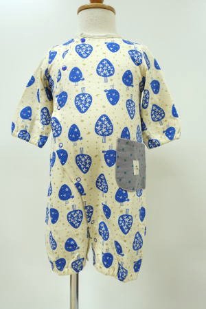 日本製接結ツリープリントの2wayオール(兼用ドレス)。グリッパーを留め変えるとカバーオールに変わる優れ物。柔らかい肌ざわりで、着心地よくて赤ちゃんニコニコ。