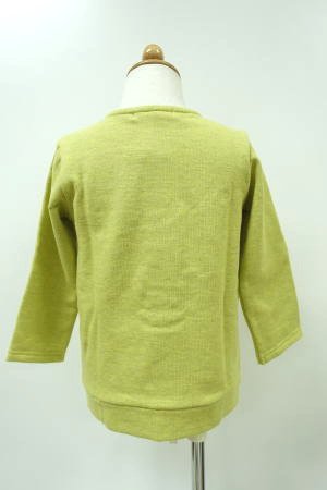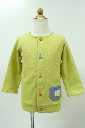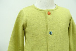 先染めスパン裏毛カーディガン。グレーがかったイエローがとってもおしゃれなイメージですカーディガンは秋冬のおしゃれの必須アイテムですね。