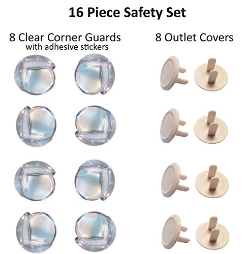 Keep your child safe from sharp corners! This soft, flexible material cushions corners and absorbs impact.Set includes 8 corner guards and 8 outlet covers.