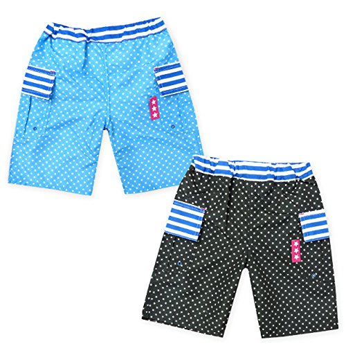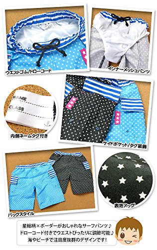 ベビー 水着 スイムウエア Whole ホール 男の子 サーフパンツ 星総柄 ボーダー サイドポケット ドローコード 男児 ベビー (1.ブルー/80cm)