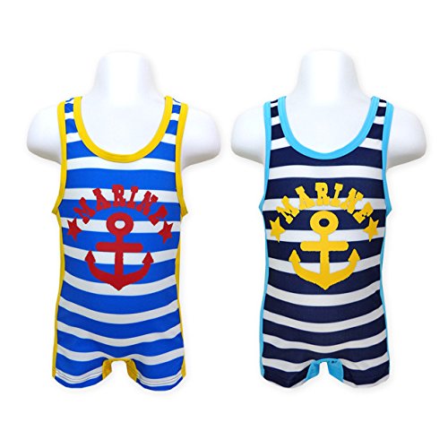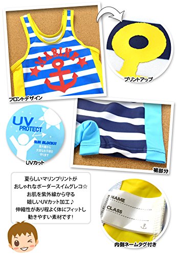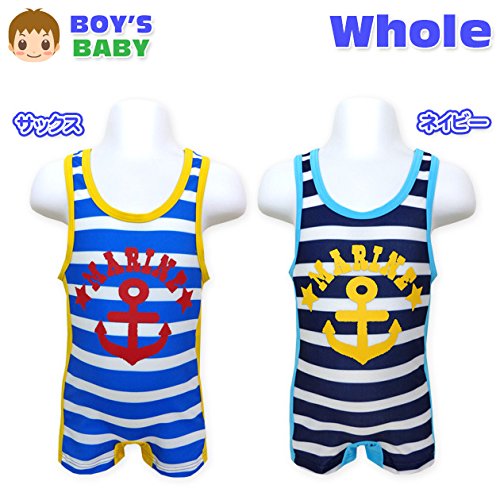 ベビー 水着 スイムウエア Whole ホール 男の子 スイムグレコ UVカット マリンテイスト ボーダー イカリ 男児 ベビー (1.サックス/95cm)