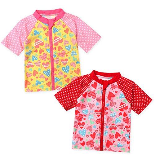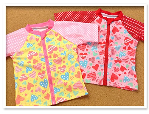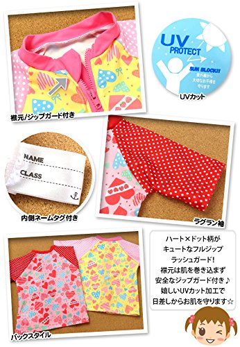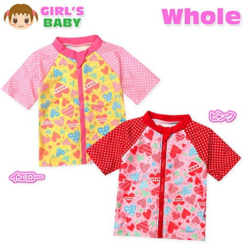 ベビー ラッシュガード 半袖 水着 スイムウエア Whole ホール 女の子 UVカット フルジップ ジップガード ハート ドット ネームタグ付き 女児 ベビー (1.イエロー/95cm)