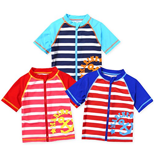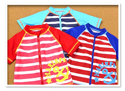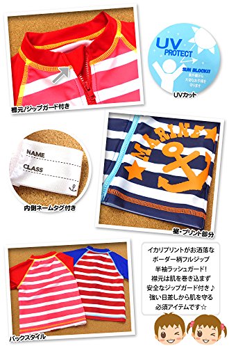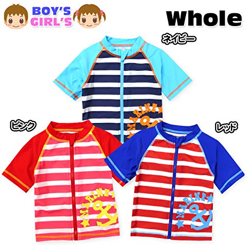 ベビー ラッシュガード 半袖 水着 スイムウエア Whole ホール 男の子 女の子 UVカット フルジップ ジップガード ボーダー イカリ 男児 女児 ベビー (1.ピンク/95cm)