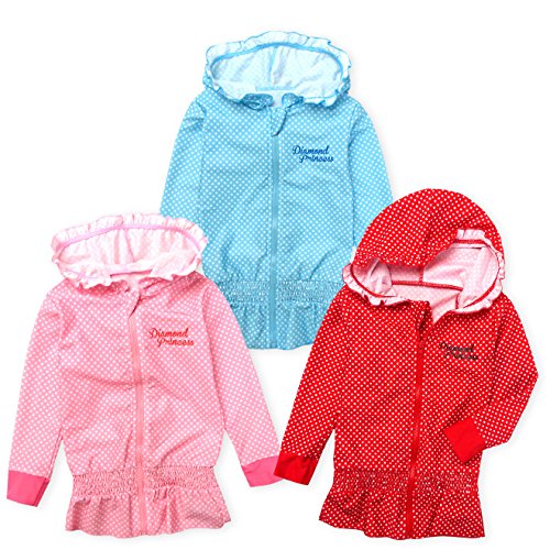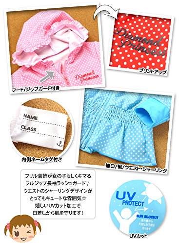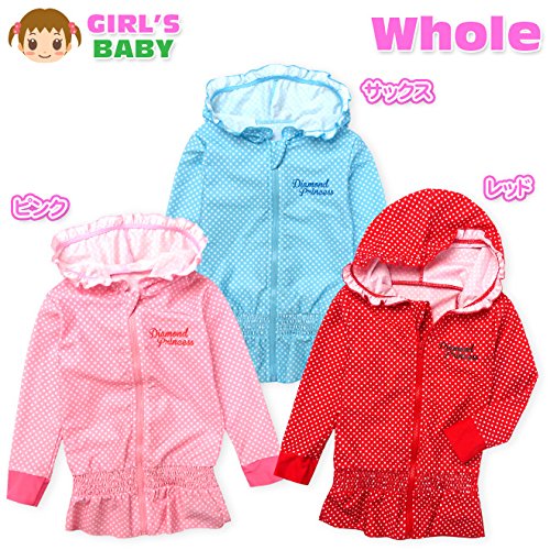 ベビー ラッシュガード 長袖 水着 スイムウエア Whole ホール 女の子 UVカット フルジップ フード付き ジップガード ドット フリル 女児 ベビー (3.サックス/95cm)