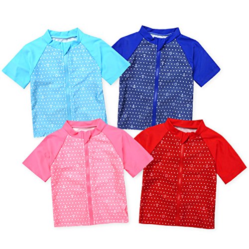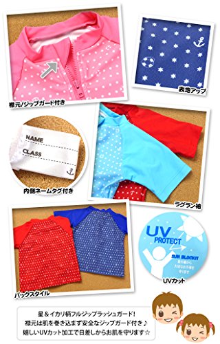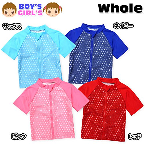 ベビー ラッシュガード 半袖 水着 スイムウエア Whole ホール 男の子 女の子 UVカット フルジップ ジップガード 星 イカリ 男児 女児 ベビー (3.サックス/95cm)