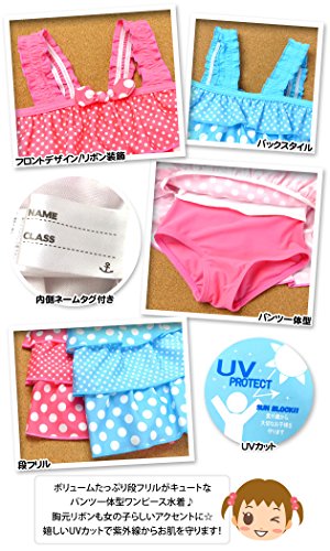 - ・ドット柄 ・リボン装飾 ・段フリル ・内側ネームタグ付き ・子供用 ・女の子