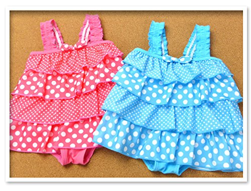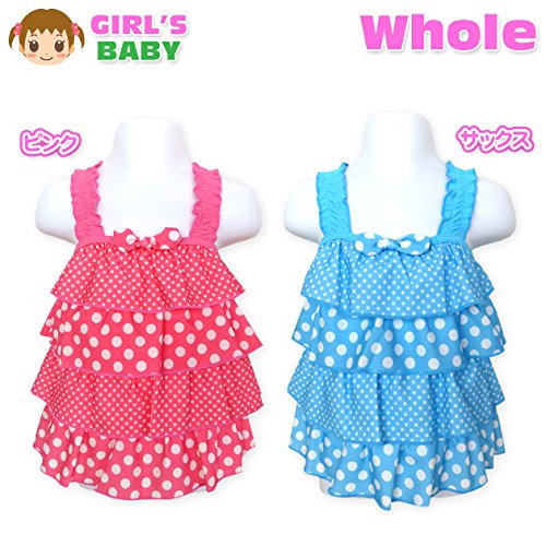 ベビー 水着 スイムウエア Whole ホール 女の子 ワンピース UVカット ドット リボン フリル ネームタグ付き 女児 ベビー (2.サックス/95cm)