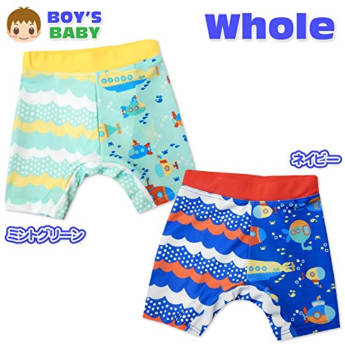 (ミントグリーン/95cm)ベビー スイムパンツ 水着 スイムウエア Whole ホール 男の子 UVカット加工 潜水艦 波 男児 ベビー