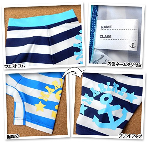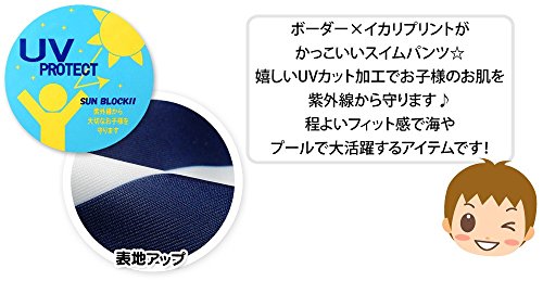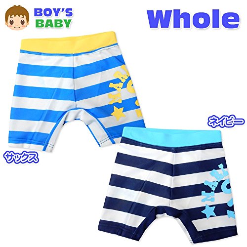 (ネイビー/90cm)ベビー スイムパンツ 水着 スイムウエア Whole ホール 男の子 UVカット加工 ボーダー いかりプリント 男児 ベビー