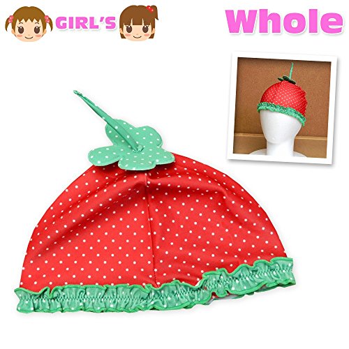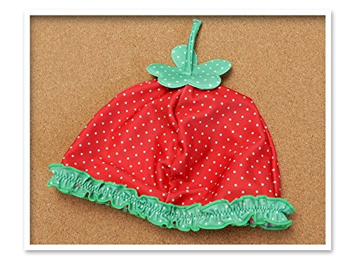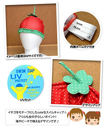 (イチゴ/S) 子供 スイムキャップ 水泳帽 Whole ホール 女の子 UVカット イチゴモチーフ フリル ドット柄 ネームタグ付 女児 ベビー キッズ