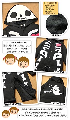 (ブラック/70cm)ベビー服 男の子 女の子 カバーオール 着ぐるみ 長袖 裏シャギー ストレッチ ガイコツ ハロウィン ほねほねプリント 男児 女児 ベビー