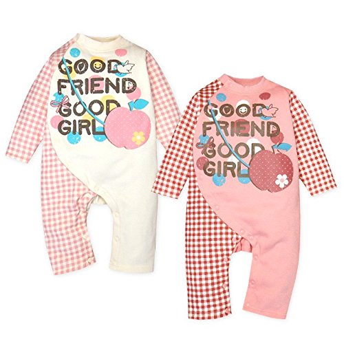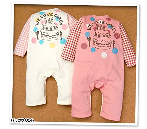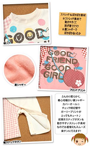(ピンク/70cm)ベビー服 女の子 カバーオール Whole ホール 長袖 裏シャギー ストレッチ チェック柄切替 ロゴプリント 前開き スナップボタン 女児 ベビー