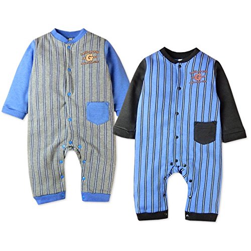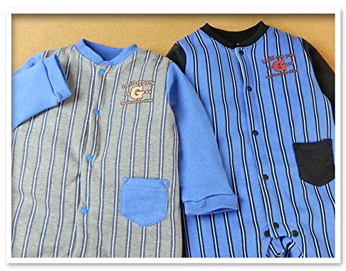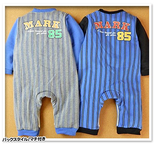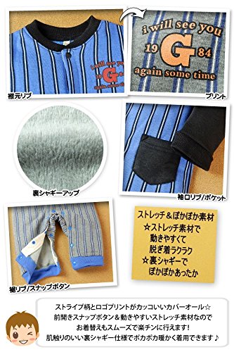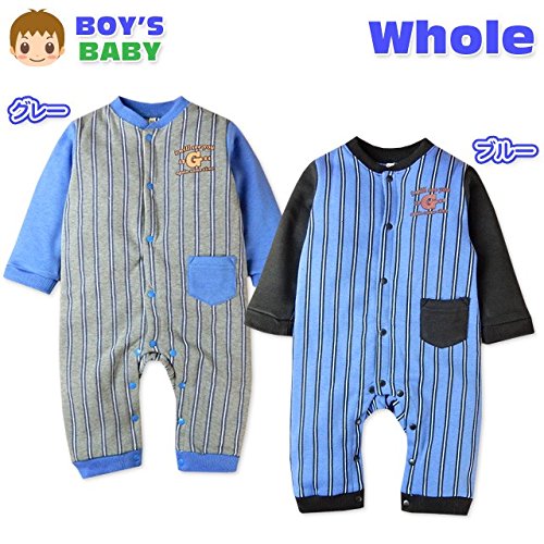 (グレー/80cm)ベビー服 男の子 カバーオール 長袖 Whole ホール 裏シャギー ストレッチ ストライプ柄 ロゴプリント 前開き スナップボタン バックマチ 男児 ベビー