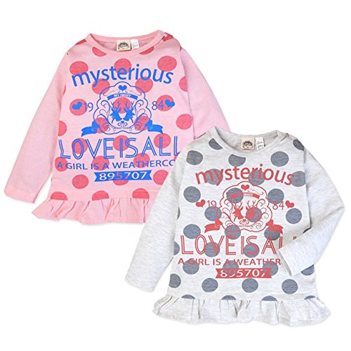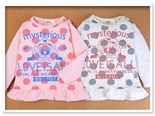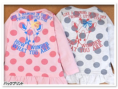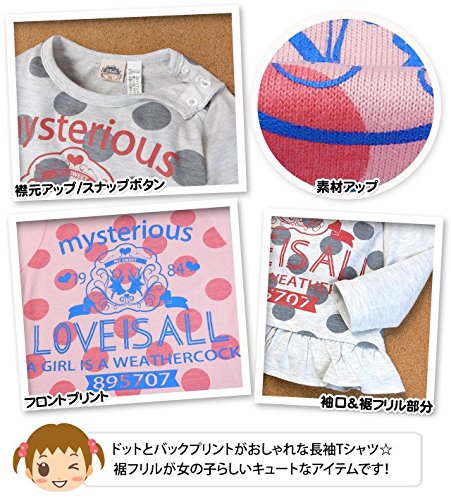 (ピンク/90cm)子供服 女の子 Tシャツ 長袖 ロゴプリント フリル裾 ドット柄 女児 キッズ 女児 ベビー