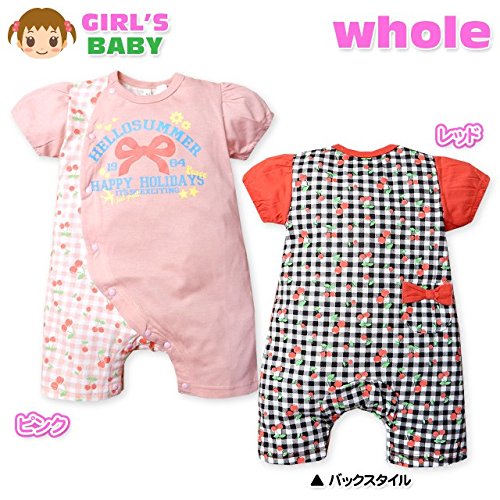 - ・whole(ホール) ・カバーオール ・ロンパース ・チェリーチェック切替 ・ロゴプリント ・パフ袖