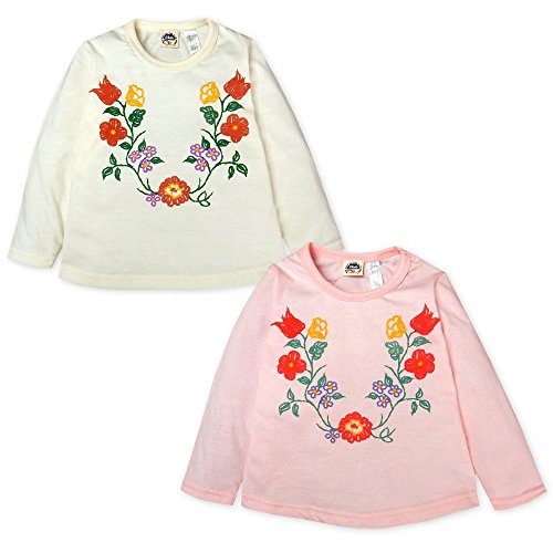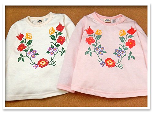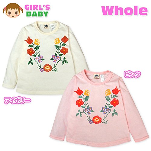 (ピンク/80cm)ベビー服 女の子 Tシャツ Whole ホール 長袖 手書き風花柄プリント Aライン 女児 ベビー