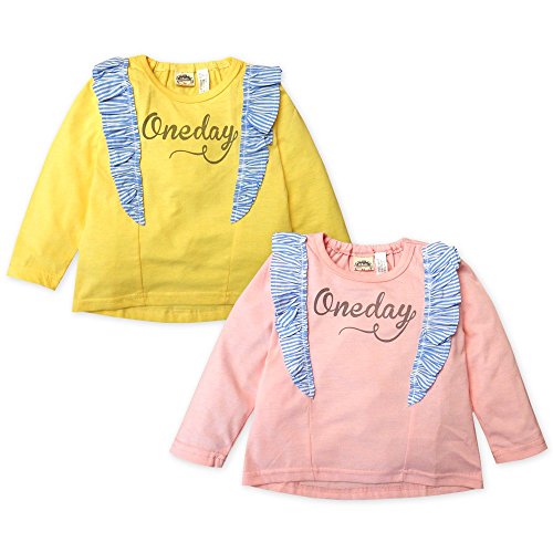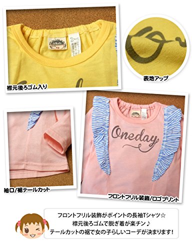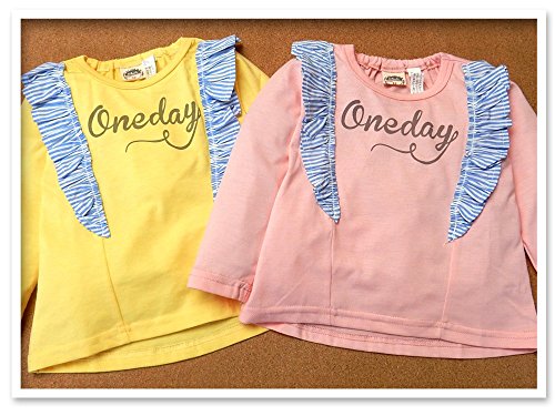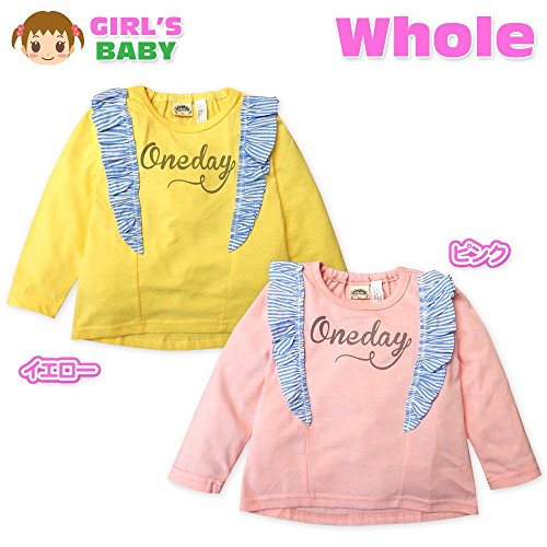 (ピンク/80cm)ベビー服 女の子 Tシャツ Whole ホール 長袖 フロントフリル装飾 襟元後ろゴム入り 裾テールカット ロゴプリント 女児 ベビー