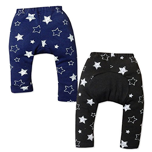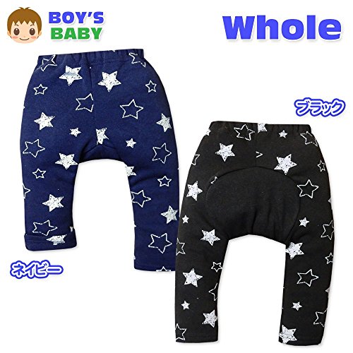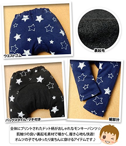 (ブラック/90cm)ベビー服 男の子 モンキー パンツ ボトム 裏起毛 星柄 後ろマチ付き ウエストゴム 男児 ベビー