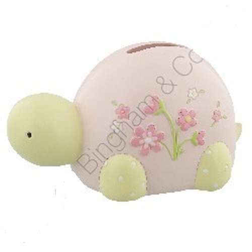 Petit Cheri Resin Money Bank Box - Pink Tortoise with Flowers Design by Bambino