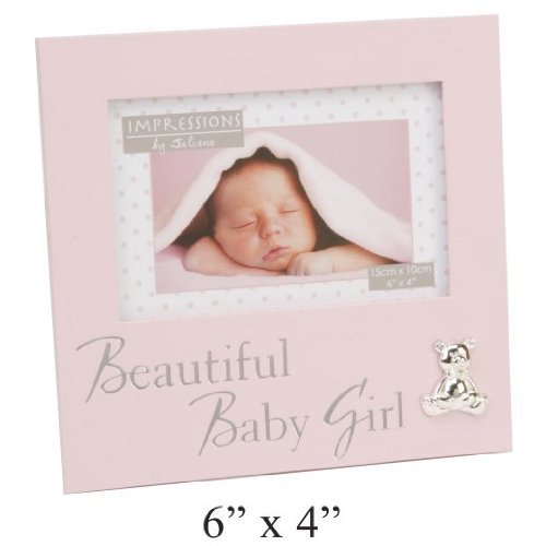 Baby Girl - 3D Teddy Motif Photo Frame;Pretty pink baby girl photo frame with a raised silver teddy motif.;Gorgeous Baby Girl writing in silver along the bottom of the frame.;Holds a 6 x 4 photo.;Freestanding Dimensions: H:18 W:19 D:1 cm
