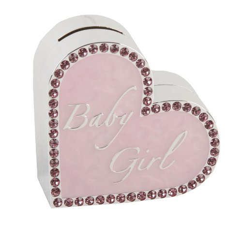 Silver Plated Baby Girl Heart Shape Money Box With Crystals;Beautiful Baby Gift /Christening Gift;Boxed;Dimensions: H:8 W: 8 D:4 cm