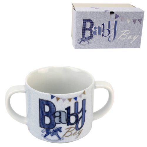 Laura Darrington Typography Ceramic Baby Mug - Baby Boy;Gift Boxed;Beautiful Baby Boy/Christening Gift;H:6 W:12 D:7 cm