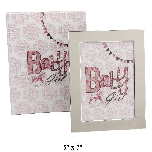 Silver Plated Frame Baby Girl 5x7;Beautiful Baby Girl/Christening Gift;Pink;Part of the Laura Darrington Typography Collection;Size: H21 x W16 x D1 cms