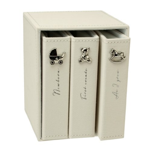Bambino by Juliana Linen Fabric Set of 3 Baby Photo Albums 4x6;Beautiful New Baby/Christening Gift;Dimensions: H:19 W:15 D:14cm