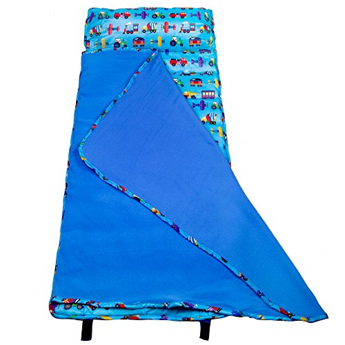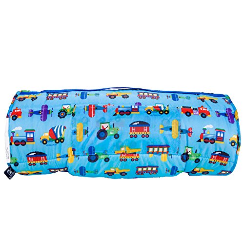 Give your little one a comfortable place to rest with the Olive Kids Trains, Planes and Trucks Easy Clean Nap Mat. It can be used for school or home. Each one rolls up compactly for easy transport, storage and travel. The kids' sleeping mat is a favorite with preschools, day cares and as a starter sleeping bag for little ones. It is designed for children ages 3 and up. The mat measures 20" x 50" in size, making it just right for small kids. It has a super-comfy fleece blanket that is attached for warmth and added comfort. This Olive kid's nap mat is made with water-resistant coated polyester. The pillow can be removed for easy washing.