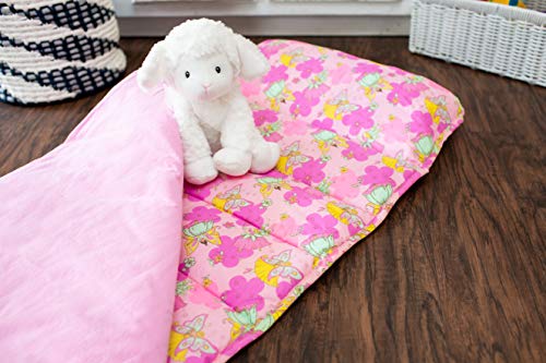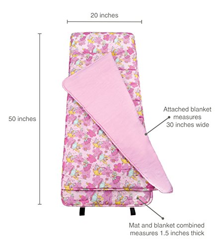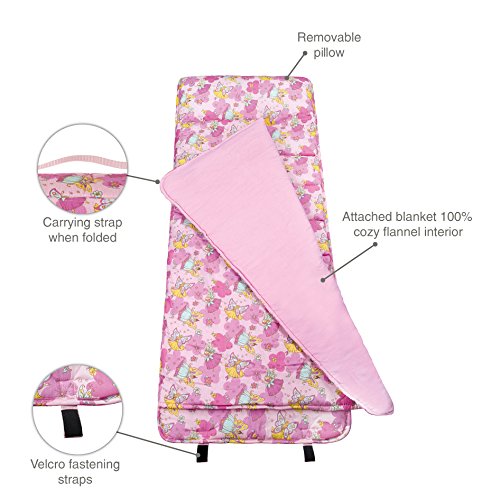 Pour a little pixie dust over nap-time with this Fairies Nap Mat by Wildkin. Wildkin Nap Mats feature beautiful cotton- polyester exteriors super-soft cotton flannel attached blankets polyester fill for added warmth and a comfy removable pillow- which makes them a great place to curl up after a long day of enchanting the world.
