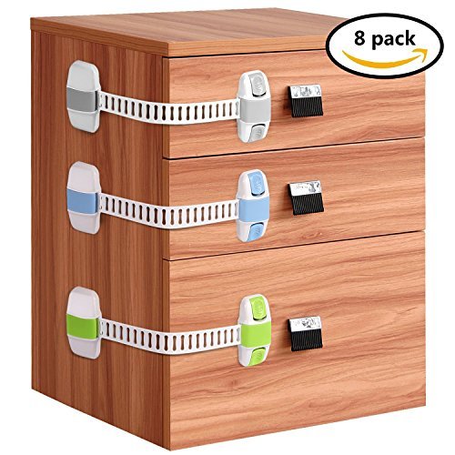 ベビー安全キャビネットロックwillceal 8パックダブル保険調節可能な子の安全ラッチキャビネット、冷蔵庫、引き出し、トイレ、など。 グレー 10414063