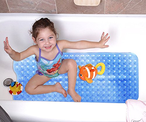 wimaha浴槽マットノンスリップ防カビ抗菌Extra Long Pebbledシャワーマットクリアブルー38l X 16 W 38L X 16W ブルー