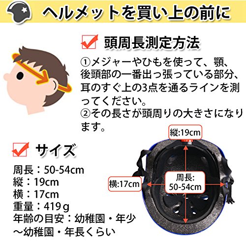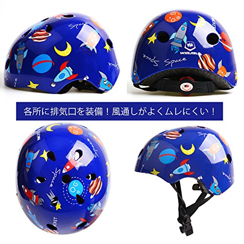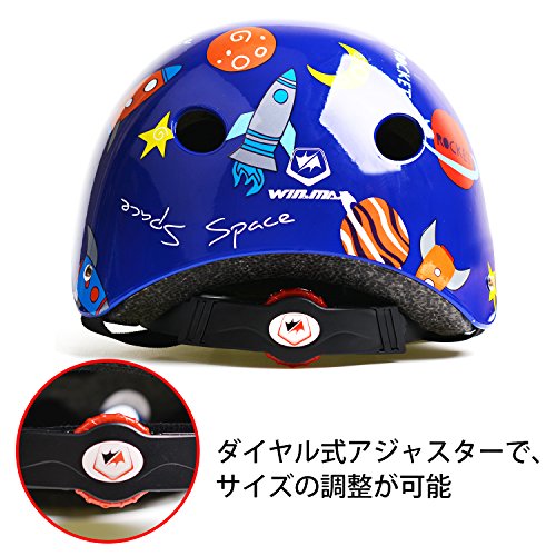 WinLine ヘルメット 子供用 キッズヘルメット 超軽量 アジャスター付き 幼児 キッズ 小学生 男の子 女の子 スケートボード ブレイブ ストライダーなど適用 (ブルー)