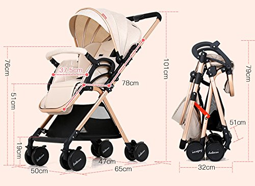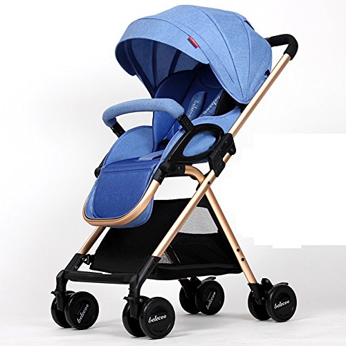 ハイプロファイルの折り畳みトロリー、ベビーカー、ライトは、天井のある車に寝そべって座ることができます ( 色 : Flax blue )