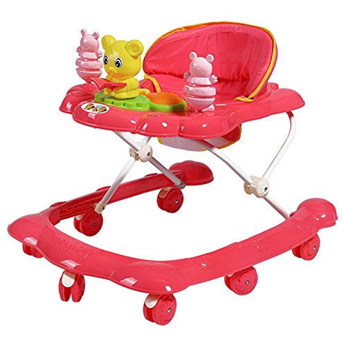 ベビーウォーカー、6ヶ月から18ヶ月の反ロールオーバー多機能運転、音楽のベビーカーでの折り畳み ( 色 : 赤 )