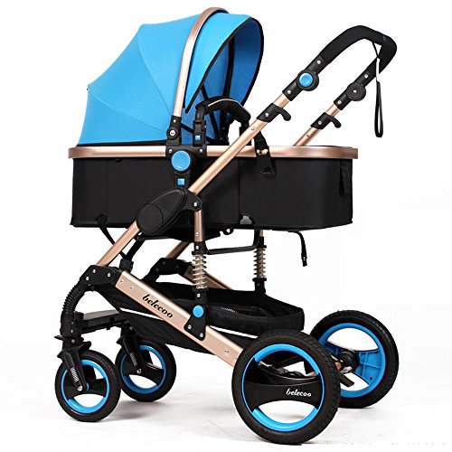 トロリー、ハイプロファイルのベビートロリー、冬と夏の四輪のショックベビートロリーを横たわることができる ( 色 : 青 )