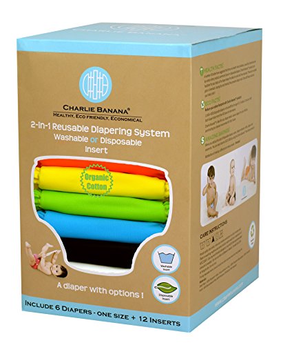 - Charlie Banana 6 Diapers Plus 12 Inserts, Organic Tango Mango