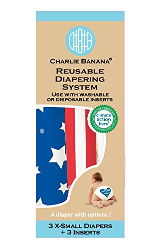 - Charlie Banana 3 Diapers Plus 3 Inserts, Patriot, X-Small