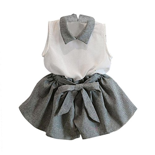 Winer かわいい子供スーツ 女の子ノースリーブ シフォンシャツ ショーツ+ ショーツ セット服 夏スーツ (130)