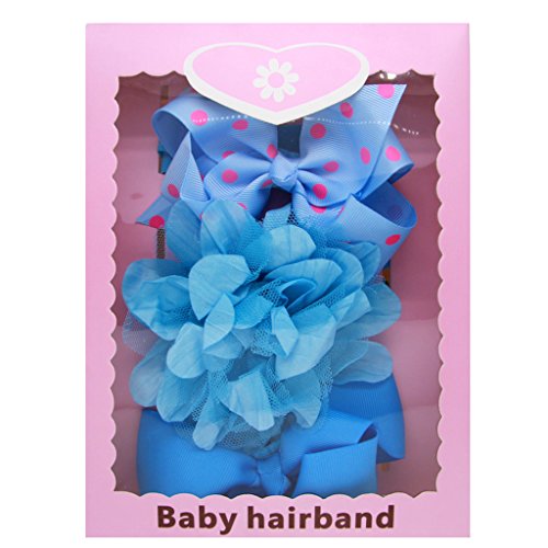 Auspicious beginning 3枚入可愛い赤ん坊少女シフォン・レース・フラワーとボー・ヘアバンド、ギフト・ボックス付き