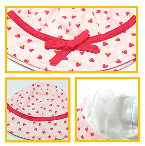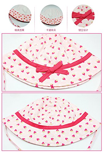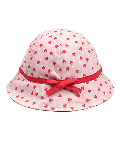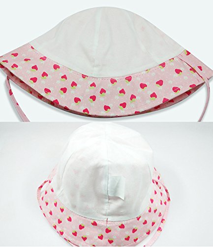 WmcyWell 赤ちゃん キッズ ベビー 子供 可愛い 幼児用 日よけ帽子 いちご柄 ハット 紫外線 uvカット つば広 キャップ 女の子 アウトドア 春夏 折りたたみ可能 おしゃれ 頭回り:47-49cm