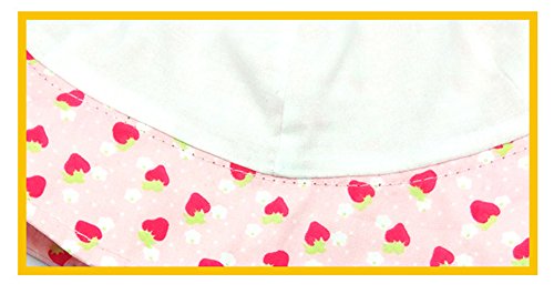 - かわいいいちごのデザイン。あご紐が付き、風に強いから、突然飛ばされる心配はありません。このあご紐で少しサイズが調節できる。