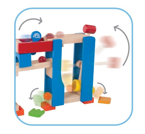 転がるボールに反応するハンマーやテコ。 カラコロ音も楽しい。 おもしろ仕掛けがいっぱい。他のユニット(別売)と連結すれば発想・楽しさ無限大!