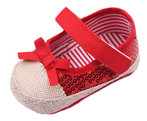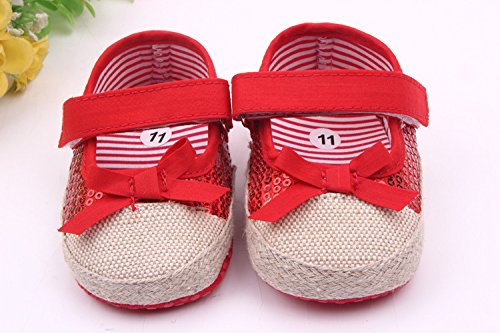 (ウォ2U)Woo2u ファースト シューズ ベビー 赤ちゃん シューズ 靴 キッズ スニーカー 女の子 スパンコール リボン レッド 12#