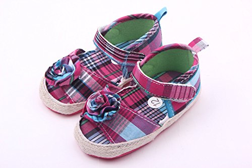 (ウォ2U)Woo2u ファースト シューズ ベビー 赤ちゃん シューズ 女の子 靴 サンダル キッズ 花飾り 格子柄 ピンク 12#